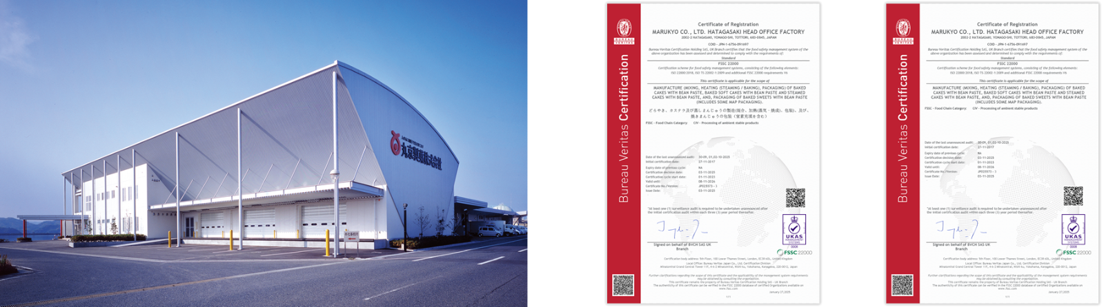 [Certification obtained on April 5, 2013, at Marukyo Seika Co., Ltd. Hatagasaki Head Office Factory]